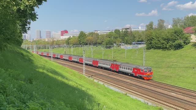 Электропоезда ЭД4М-0183 и ЭД4М-0318, перегон Коломенское - Москва-Пассажирская-Павелецкая, г. Москва (июль 2025г.)