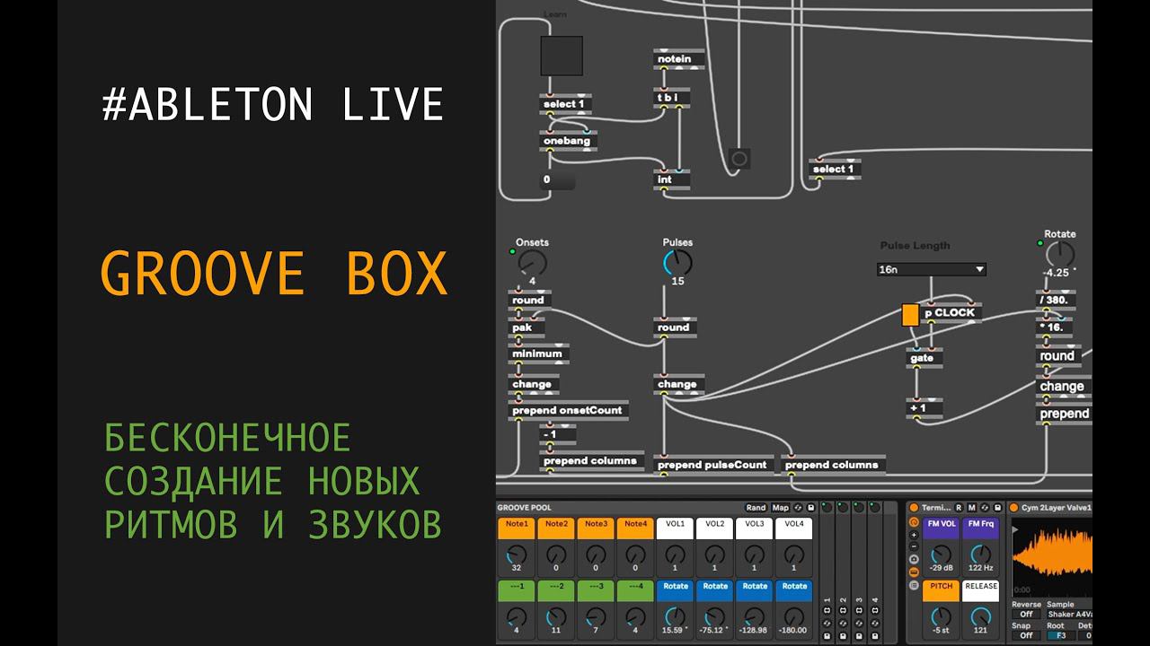 Использую эту технологию Вам будет интересно создавать разные элементы ударных и перкуссионных инструментов в любых жанрах электронной музыки... Что бы купить этот инструмент пишите в телеграмм: https://t.me/information_ghetto СУПЕР КРУТОЙ КОНТЕНТ ТУТ: https://boosty.to/spektralschool Запишитесь на наши базовые индивидуальные занятия с автором курса в ONLINE! темы занятий: - ABLETON LIVE - сэмплерные технологии, - создание грува, - разработка трэка, - живое выступление, - создание собственных инструментов... Так же доступны семинары на разные темы: - СИНТЕЗАТОРЫ и МОДУЛЬНОЕ СИНТЕЗАТОРОСТРОЕНИЕ - СОЗДАНИЕ ПЕРКУССИОННЫХ ИНСТРУМЕНТОВ В ABLETON LIVE - ГЛОБАЛЬНЫЕ ОСНОВЫ СОЗДАНИЯ И ВОСПРИЯТИЯ МУЗЫКИ - AMBIENT, IDM, NOISE для связи: Telegram: https://t.me/spektralaudioschool e-mail: spektralschool@gmail.com VK: https://vk.com/spektralaudioschool facebook: https://www.facebook.com/spektralaudioschool instagram: https://www.instagram.com/spektralschool https://www.facebook.com/Informationghetto https://informationghetto.bandcamp.com https://soundcloud.com/clapan