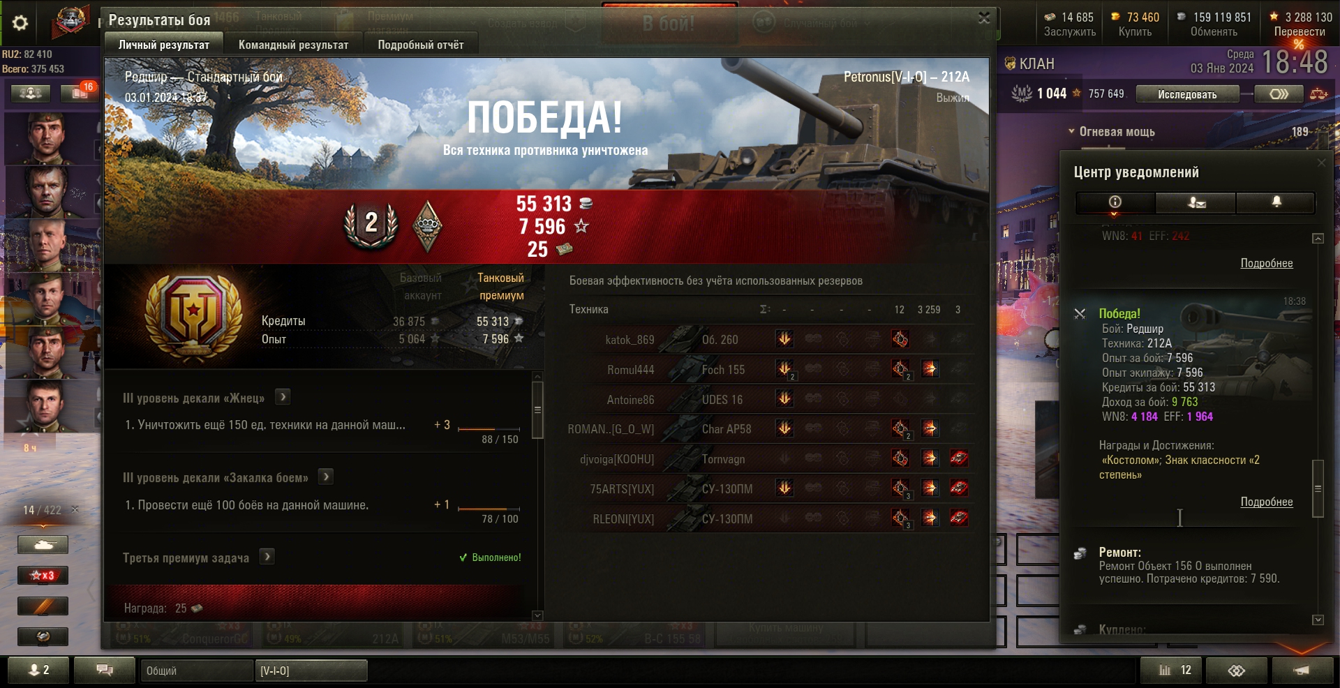 2024.01.03 212А, Редшир, сваншотил фульную СУ-130ПМ, 3259урон, 3фраг