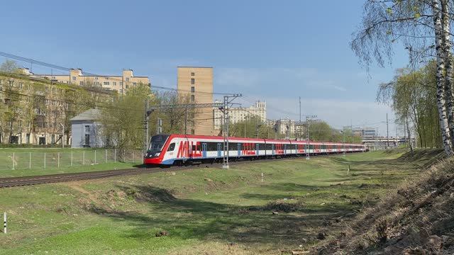 Электропоезд ЭГ2Тв-015 "Иволга", перегон Подмосковная - Тушино, г. Москва (апрель 2025г.)