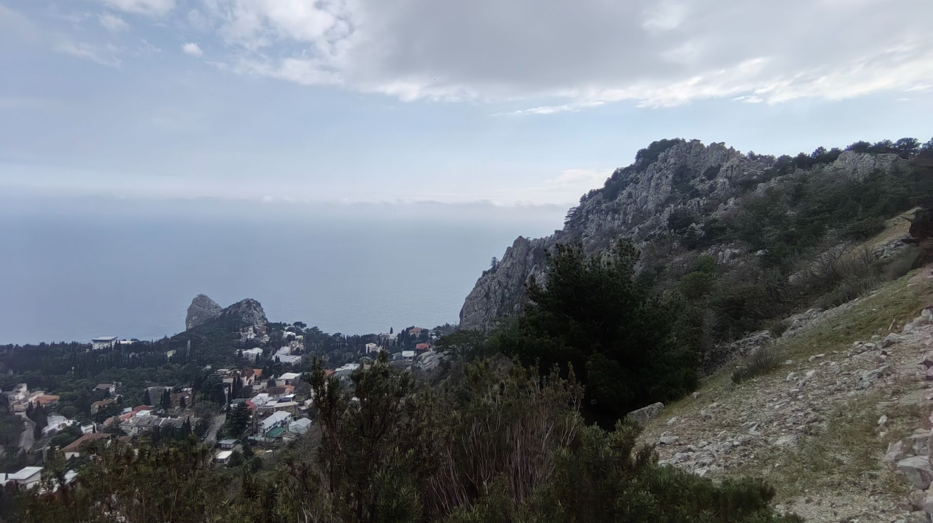 Пора противодействия теплого берегового и холодного горного воздушных фронтов, а значит и туманов, не заканчивается. А в горы хочется. В этой погодной ситуации лучшее решение—подняться на невысокую гору на самом побережье. Кош-Кая, более известная как Кошка, давно меня зазывала познакомиться. И вот удачно сложились погодные обстоятельства для прогулки по спинке Кошки к ее уху, а также в обратном направлении, к хвостику. Горный массив расположен между поселками Симеиз и Кацивели. Добраться до горы Кошка очень удобно, достаточно выйти на остановке "Верхний Симеиз" или "Голубой залив", а затем пройти по Южнобережному шоссе к началу туристической тропы на южной части горы. Гора Кошка является такой же известной прибрежной анималистической южнобережной горой как и Медведь-гора между Гурзуфом и Партенитом. Именем гряда обязана татарам, которые назвали ее "Кош-Кая", что чаще переводится как "двойная или парная скала". Но тюркское слово "кош" также можно перевести как "верхний привал (стоянка)", "загон для скота". Такой вариант перевода также возможен, поскольку заброшенные укрепления крепости Лимена-Кале на горе использовались пастухами для стоянки скота. Затем местные жители разглядели в форме горы силуэт кошки, которая присела, чтобы напиться воды из моря. С тех пор скала стала называться Кошкой. Эта гора невысокая, и возвышается всего на 255 метров над уровнем моря, тропа практически пологая, недлинная (меньше 2 км), а виды сверху на Симеиз с Алупкой, Кацивели, скалы Дива, Панеа, Крыло лебедя, горы и море открываются живописнейшие. В 1972 году было построено Южнобережное шоссе, которое разделило гору на две части. На обеих частях горы находятся уникальные исторические артефакты. На южной половине—остатки средневековой крепости Лимена-Кале, построенной в начале 13 века в ответ на визиты любопытных монголов, которые начали заскакивать на полуостров, прикидывая что тут и как. Пытливый исследователь обнаружит часть оборонительной стены, которая в свое время достигала до 6 метров в высоту, 90 метров в длину и до 2 метров в ширину. А также (один точно, лично обнаружен мной) фундамент и сохранившиеся невысокие стены одного из 30 строений, располагавшихся на территории крепости. Но главной звездой этой бродилки стали, безусловно, два таврских могильника. Чтобы их найти, надо перейти шоссе на северную половину Кошки и подняться немного вверх. Я интуитивно дошла до первого могильника под условным названием "Кошка-1" с восемью таврскими ящиками. Перед входом установлена информационная доска со схемами обоих могильников и краткой информацией. На "Кошку-2" надо переместиться вдоль забора ближе к ржавой антене телескопа. Второй могильник состоит из 25 каменных ящиков. Изначально их было обнаружено около 50, это один из самых крупных таврских могильников на полуострове, но строительные работы, проведенных на горе Кошка в 1960-х годах, уничтожили часть могильника. На Главной гряде Крымских гор и Южном берегу могильники из каменных ящиков появились в 6-5 веках до нашей эры. Погребальный обряд тавров подразумевал совершение захоронений в каменных ящиках, сложенных из четырех плит и накрытых пятой плитой. В один каменный ящик укладывали от 2-3 до нескольких десятков погребенных в скорченном положении на боку. Если места в гробнице не хватало, то все кости, кроме чер