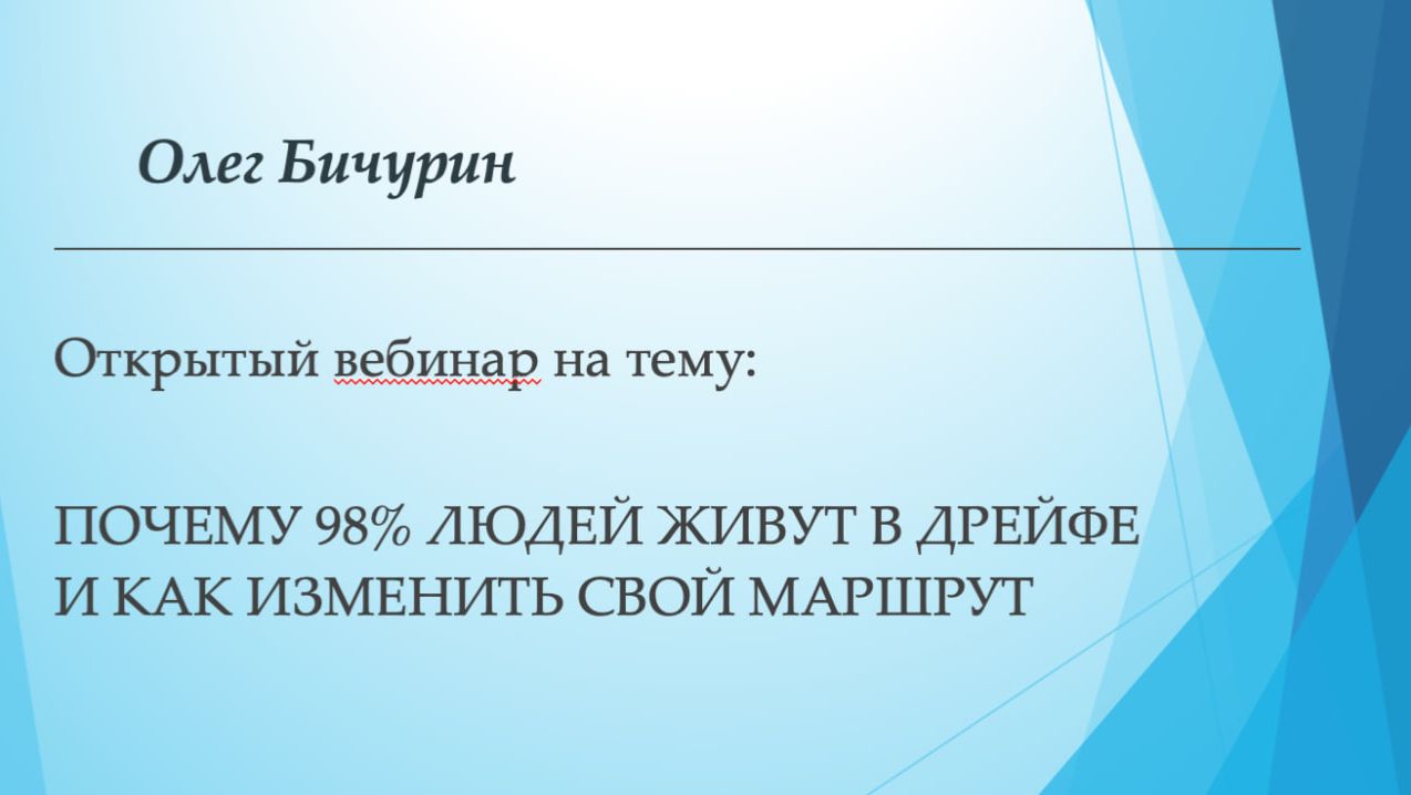Открытый вебинар 20 февраля 2026 года На вебинаре разобрали, почему 98% людей живут в дрейфе. Главная мысль: Люди не ленивые. У них нет маршрута. Поговорили о том: • как теряется фокус • почему дисциплина не про силу воли • почему разовая мотивация не меняет траекторию • как утро становится точкой управления Главное — система. Не вдохновение. Не эмоциональный всплеск. А повторяемость. Если вы понимаете, что пора выходить из дрейфа записывайтесь на онлайн-марафон «Магия Утра». Участие бесплатное. Чтобы присоединиться, нужно заполнить анкету участника: https://forms.gle/oeZoShFQqwEAzs5h7 После заполнения вам будет направлена ссылка на подключение. Больше информации о пользе ранних подъемов и методике Магия Утра на телеграм канале: https://t.me/olegbichurinSJ