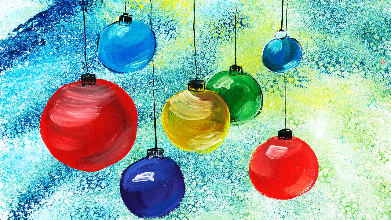 Нарисуем новогодние шарики гуашью. Рисуем новогодний рисунок легко. Правополушарное рисование.