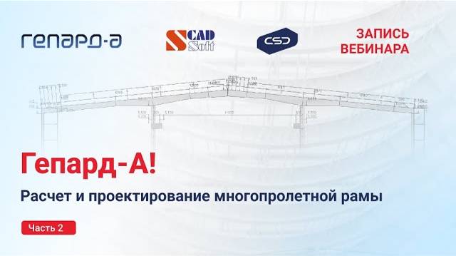 Вебинар «Расчет и проектирование многопролетной рамы в Гепард-А». Часть 2 Мы продолжаем серию вебинаров по расчету стальных конструкций в программном комплексе Гепард‑А! В процессе вебинара было выполнено проектирование многопролетной рамы производственного здания с крановыми нагрузками. Также, был произведен сбор нагрузок, подбор сечений, расчет узлов, выдача нагрузок на фундаменты, а также корректировка проекта после изменения задания. ⭐ Программа мероприятия На примере многопролетной рамы с ригелем с переменной высотой стенки были освещены следующие возможности по ПК Гепард-А: ✅ Возможности параметризации геометрии и нагрузок ✅ Здание типовых (постоянных и климатических) и крановых нагрузок ✅ Генерация сетки стержневых и оболочечных конечных элементов ✅ Автоматизированный подбор сечений ригеля переменного сечения и колонн постоянного сечения ✅ Экспресс проверки сечений ✅ Полный набор проверок по СП 16 ✅ Корректировка проекта после изменения задания ✅ Совместная работа со SCAD++ ✅ Формирование Word-отчетов ❓ На вебинаре рассказали: Как значительно ускорить процесс проектирования плоских рам в десятки раз, особенно с применением сварных двутавров с переменной высотой стенки, в т.ч. и на этапе компоновки здания, когда нужно оценить несколько вариантов Для кого вебинар? инженеров-проектировщиков строительной части стальных конструкций руководителей и главных специалистов строительных отделов главных конструкторов проектных организаций и проектных подразделений заводов металлоконструкций специалистов по внедрению САПР компаний, занимающихся комплектной поставкой зданий из металлоконструкций Спикеры: Теплых Андрей Владимирович, заместитель генерального директора по маркетингу ООО НПФ «СКАД СОФТ», автор программы, руководитель разработки Поздеев Максим Леонидович, инженер-исследователь ООО «Автоматизация проектных работ», детализация постановки задач, тестирование в процессе разработки, техподдержка пользователей