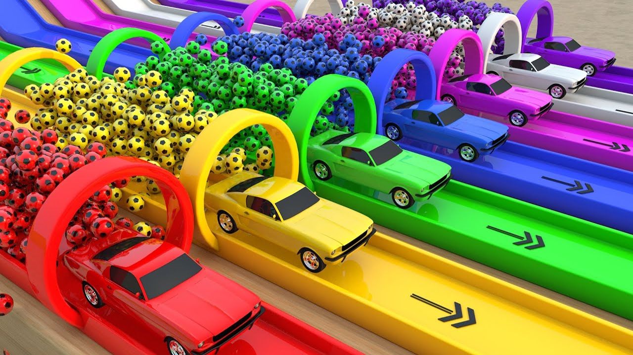 Видео для детей, учимся с помощью машинок - Цветные трассы для уличных транспортных средств-монстров