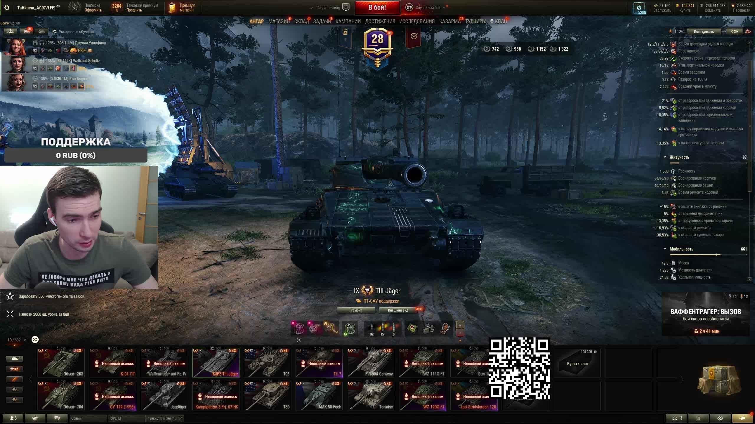 Поддержать стримера http://www.donationalerts.ru/r/tahkucm_ac Сбер без комиссии 2202 2062 2408 9735 напишите в чате, чтобы проверил Telegram https://t.me/TaHkucm_AC Канал Ютуб https://www.youtube.com/c/TaHkucmAC Канал VK Play Live https://vkplay.live/tahkucm Канал Бусти https://boosty.to/tahkucm Канал на трово https://trovo.live/TaHkucm_AC Канал Дзен https://dzen.ru/id/62355e95d406852937d33526 Группа Вконтакте https://vk.com/tahkucm_ac Оборудование и модернизации на все танки https://docs.google.com/spreadsheets/d/16koQOrtKQKQrAy2Pgfm6GBeG8bA1tJP_7Vm78knwUXA/edit#gid=422106233 Настройки игры в скринах https://dzen.ru/a/YmFvHhJ9yi3rZO5M Моды со скринами установки https://vk.com/topic-136212047_47639792 По поводу рекламы писать в личку https://vk.com/v_xarlamow Всем привет! Меня зовут Виктор, мой ник TaHkucm_AC. На моем канале стрим мира танков каждый день с 8 или 9 по мск. Так же иногда стримлю вечером в произвольное время, чтобы не пропустить подпишитесь на оповещения в телеге или вк (ссылки выше). Играю в танки с декабря 2011 года, а стримить начал в начале 2017 года. Во время стримов общаюсь с чатом, помогаю советами по игре, объясняю тактику. Средняя статистика 65% побед и 4-5к вн8. Фан кланы SLPFR - Командиры marmyn и artlay - из требований только то, чтобы вы часто играли в танки. Укреп 10 уровня. Участвуют в ивентах на ГК, как минимум чтобы собрать пропуск на аукцион. L-DS - Командир DarkSpawn13. Укреп 10 уровня, плюхи по кд SVLFE - Командир Shadowlions. Требуется Team Speak (программа связи) для взводов и клановых покатушек. Участвуют в ивентах на ГК, как минимум чтобы собрать пропуск на аукцион. укреп 10 уровня