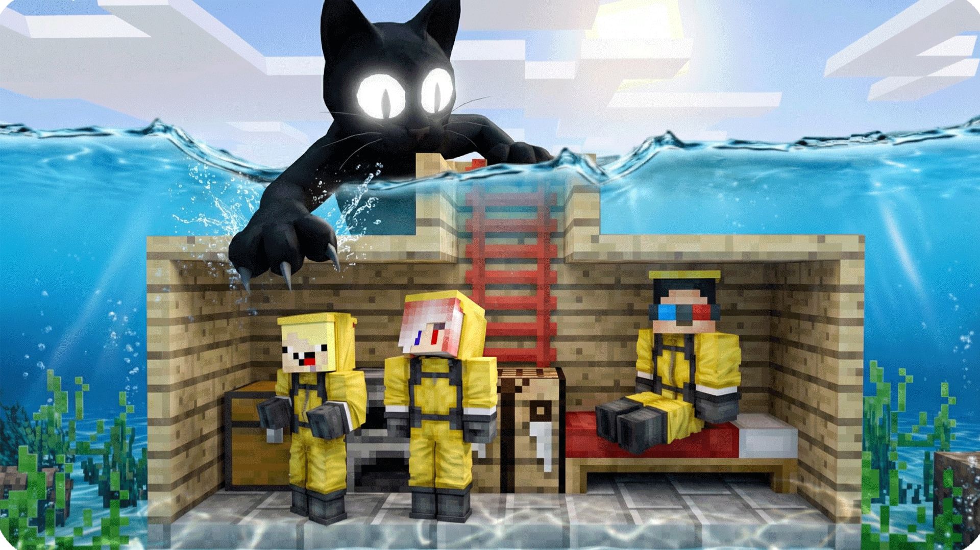 😨Построили БУНКЕР под ВОДОЙ Против КОТА из 99 НОЧЕЙ в Майнкрафт! НУБИК