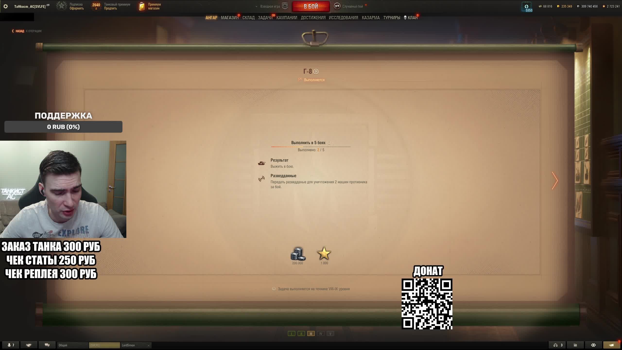 Поддержать стримера http://www.donationalerts.ru/r/tahkucm_ac Сбер без комиссии 2202 2062 2408 9735 напишите в чате, чтобы проверил Telegram https://t.me/TaHkucm_AC Канал VK Play Live https://vkplay.live/tahkucm Канал Бусти https://boosty.to/tahkucm Канал на трово https://trovo.live/TaHkucm_AC Канал Яндекс Дзен https://dzen.ru/id/62355e95d406852937d33526 Группа Вконтакте https://vk.com/tahkucm_ac Оборудование и модернизации на все танки https://docs.google.com/spreadsheets/d/16koQOrtKQKQrAy2Pgfm6GBeG8bA1tJP_7Vm78knwUXA/edit#gid=422106233 Настройки игры в скринах https://dzen.ru/a/YmFvHhJ9yi3rZO5M Моды со скринами установки https://vk.com/topic-136212047_47639792 По поводу рекламы писать в личку https://vk.com/v_xarlamow Всем привет! Меня зовут Виктор, мой ник TaHkucm_AC. На моем канале стрим мира танков каждый день с 8 или 9 по мск. Так же иногда стримлю вечером в произвольное время, чтобы не пропустить подпишитесь на оповещения в телеге или вк (ссылки выше). Играю в танки с декабря 2011 года, а стримить начал в начале 2017 года. Во время стримов общаюсь с чатом, помогаю советами по игре, объясняю тактику. Средняя статистика 65% побед и 4-5к вн8. Фан кланы SLPFR - Командиры marmyn и artlay - из требований только то, чтобы вы часто играли в танки. Укреп 10 уровня. Участвуют в ивентах на ГК, как минимум чтобы собрать пропуск на аукцион. L-DS - Командир DarkSpawn13. Укреп 10 уровня, плюхи по кд SVLFE - Командир Shadowlions. Требуется Team Speak (программа связи) для взводов и клановых покатушек. Участвуют в ивентах на ГК, как минимум чтобы собрать пропуск на аукцион. укреп 10 уровня