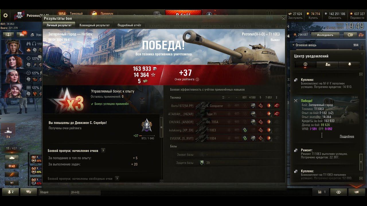 2024 04 24 Натиск T110E3, Затерянный город, 7653 урон, 2 фраг