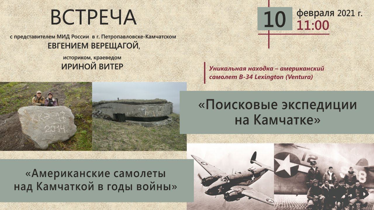 Говорили про упавший самолет, смотрели уникальную выставку и слушали рассказы очевидцев экспедиции! КАК ПРОХОДИЛО МЕРОПРИЯТИЕ: https://youtu.be/mzV6YpFS7k4 Осенью прошлого года поисковики под руководством Ирины Витер и Евгения Верещаги, совместно с поисковым отрядом «Казначей -41» нашли фрагменты самолета В-34 ( Вентура). Обломки самолета были подняты из реки, они настолько сильно заросли водорослями, что трудно было определить и марку самолета, и историю того, как он оказался на Камчатке. Об уникальных находках рассказали представитель МИД России в г. Петропавловске-Камчатском Евгений ВЕРЕЩАГА и историк, краевед Ирина ВИТЕР. Встреча "Американские самолеты в годы войны над Камчаткой" была посвящена обсуждению камчатских поисковых экспедиций. После встречи все желающие могли ознакомиться с выставкой экспонатов, найденных на Курилах. Подробнее о выставке: https://youtu.be/ldmizZF9sno Узнавайте всегда первыми об интересных встречах и не только: Наш сайт: https://www.kamlib.ru/ Группа ВКонтакте: https://vk.com/kkamlib Наш Instagram: https://www.instagram.com/kamlib/ Наш Facebook: https://www.facebook.com/kkamlib/ Подписаться на рассылку в WhatsApp: https://www.kamlib.ru/about/structure/departments/zayavka-na-dobavlenie-v-gruppu-what-sapp.php