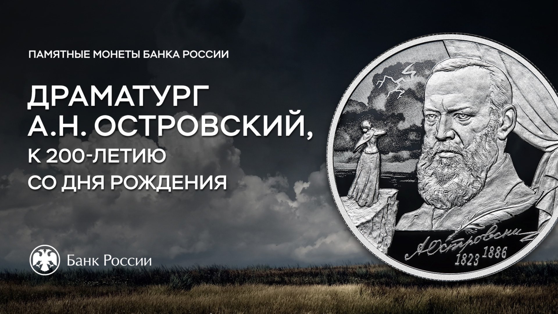 Банк России 6 февраля 2023 года выпускает в обращение памятную серебряную монету номиналом 2 рубля «Драматург А.Н. Островский, к 200-летию со дня рождения» серии «Выдающиеся личности России», тиражом 3000 штук. Александр Островский внес огромный вклад в развитие русского национального театра. Его перу принадлежит 47 пьес, многие из которых до сих пор входят в репертуар российских театров. #БанкРоссии #ЦБ #монеты #островский #выдающиесяличности ____________________________________ Музыка предоставлена Tunetank.com