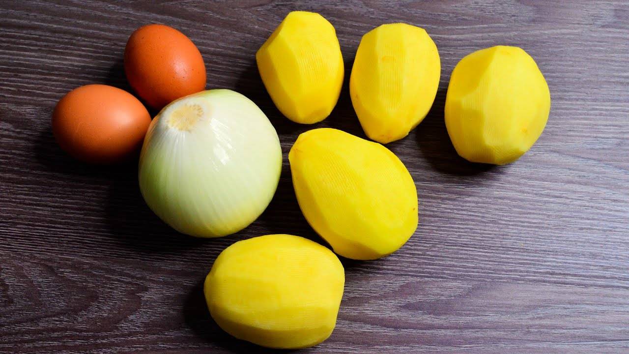 Ингредиенты: 1/2 лук 5 картофелин (1 кг) 2 яйца соль укроп, зелень обжарить 15-20 мин,