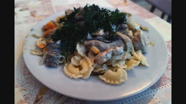 Мясо с грибами в сметанном соусе