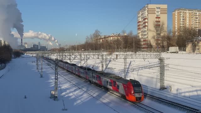 Электропоезд ЭС2Г-045 "Ласточка", станция Канатчиково, Московское центральное кольцо, г. Москва (январь 2023г.)