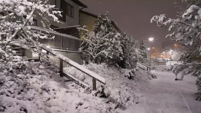 Ночная прогулка во время сильного снегопада. Неспешное путешествие по улицам Пяйволянлааксо, Керавы