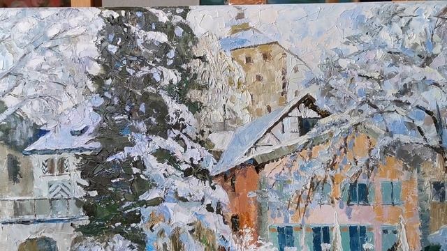 холст, масло, 70 x 60. Короткая заметка, записанная во время работы над картиной. В этой работе я изобразила место, которое очень люблю. Это швейцарская деревня Верденберг. Я часто гуляю по этой набережной вдоль озера, но такой сказочный вид, как на моем пейзаже, бывает, наверное, только пару раз в году. После снегопада все деревья укутались снежными шапками. Атмосфера старого города превращается в поистине фантастическую! Картина написана масляными красками на холсте, снабжена крючками для подвешивания на стену. Боковины прокрашены краской, поэтому картину можно сразу повесить на стену. Эта картина украсит любой интерьер, как современный, так и классический. You can buy my paintings on / Мои картины можно приобрести на / Meine Bilder sind hier zu kaufen https://www.1stdibs.com/search/art/?q=shesterikova https://www.saatchiart.com/en-ch/all?query=shesterikova https://www.singulart.com/en/artist/anna-shesterikova-19385 Website https://www.anna-art.ru Мои стихи можно найти на https://stihi.ru/avtor/buchs5 Музыка: Longer Distance - TrackTribe