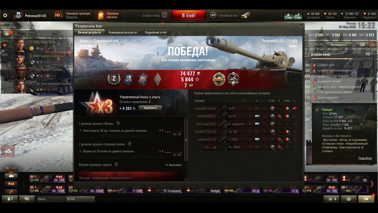 Победа! Бой: Штиль, Техника: T110E5, Штиль, 3958урон 1 фраг Опыт за бой: 5 844 (x2) , Опыт экипажу: 7 305, Кредиты за бой: 74 477, Доход за бой: -23 242, WN8: 3 731, EFF: 2 118, Награды и Достижения: «Костолом»; «Огонь на поражение»; «Стальная cтена»; «Непробиваемый»; «Спартанец»; Знак классности «2 степень» ------------ Здесь мои покатушки по игре World of tanks, Не судите строго, играю урывками после работы. :). https://rutube.ru/channel/23544308 Всем добра :) и удачи на полях сражений! :) --------------------- http://wotreplays.ru/uploader/anpetr33/id/414778 --------------------- Мой канал на твитче ★ https://www.twitch.tv/anpetr33 --------------------- Мой канал на ЮТУБе ★ https://www.youtube.com/channel/UCPZbvH8TEAkNYXJClIHbgZQ --------------------- Поддержать стримера ★ http://bit.ly/2g49x6x