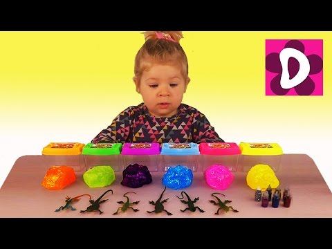 Диана открывает сюрпризы боксы в которых есть Лизун и разные ящерицы.