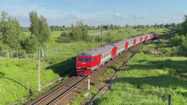 Электропоезд ЭТ2М-133, перегон Саблино - Колпино, Ленинградская область (июнь 2024г.)