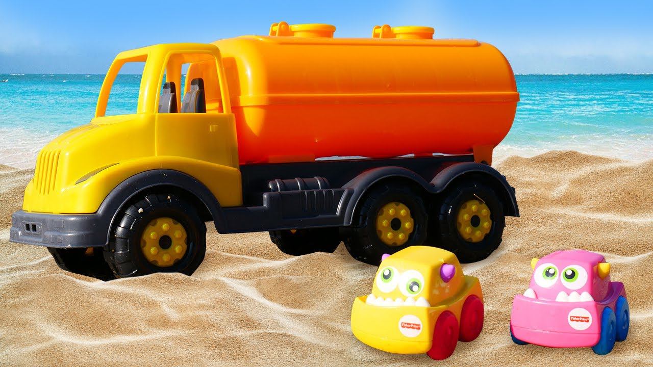 Видео для малышей - Машинки играют на пляже в бассейн! Песочница для детей