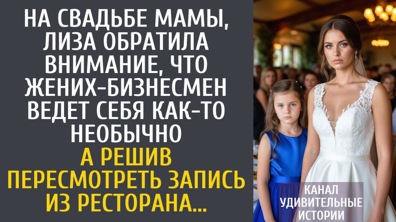 Жизненные истории: на свадьбе мамы, Лиза обратила внимание, что жених-бизнесмен ведет себя как-то необычно... А решив пересмотреть запись из ресторана... Истории из жизни для Вас читает Влад. #Историиизжизни #аудиокниги #аудиорассказ #интересныеистории #жизненныеистории