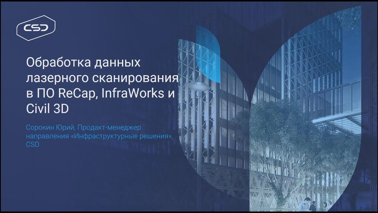 Компания CSD приглашает вас прослушать вебинар «Обработка данных лазерного сканирования в ПО ReCap, InfraWorks и Civil 3D». Цель вебинара – продемонстрировать применение технологий лазерного сканирования в проектировании, а также поделиться опытом эффективной обработки облаков точек. В ходе онлайн мероприятия, будут рассмотрены следующие темы: - Проведение работ на площадке - Обработка облака точек в ReCap - Работа с облаком точек в InfraWorks - Получение необходимой геометрии в Civil 3D и AutoCAD Вебинар будет интересен всем, кто работает с инфраструктурными проектами, а также для компаний, которые проводят съемку объектов для последующего проектирования. Спикер: Сорокин Юрий, продакт-менеджер отдела ПО направления «инфраструктурные решения».