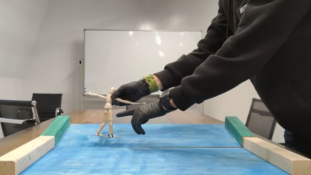 Старт от борта с места в направлении фронтсайд, выполнить поворот бэксайд, вернувшись к борту старта во время поворота во фронтсайд сорвать плавники, протолкнуть хвост доски таки образом, что бы он оказался на таком же расстоянии, или ближе к мосту, чем нос доски. (доска должна оказаться параллельно линии волны). Вернувшись в стабильное положение завершить проезд до противоположенного борта, остановиться для завершения упражнения.