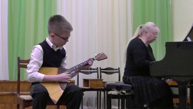 Преподаватель балалайки Царенко Николай Васильевич, концертмейстер Тюлюбаева Светлана Ивановна. ДШИ № 5 "Рапсодия", г. Архангельск. Покупайте сборники преподавателя Царенко Николая Васильевича "Балалайки звонкая струна", Хрестоматия по балалайке "Обойди весь белый свет - балалайки лучше нет", "Пьесы для ансамблей народных инструментов", "Мой Север - край родной" - народный фольклор Архангельской области.