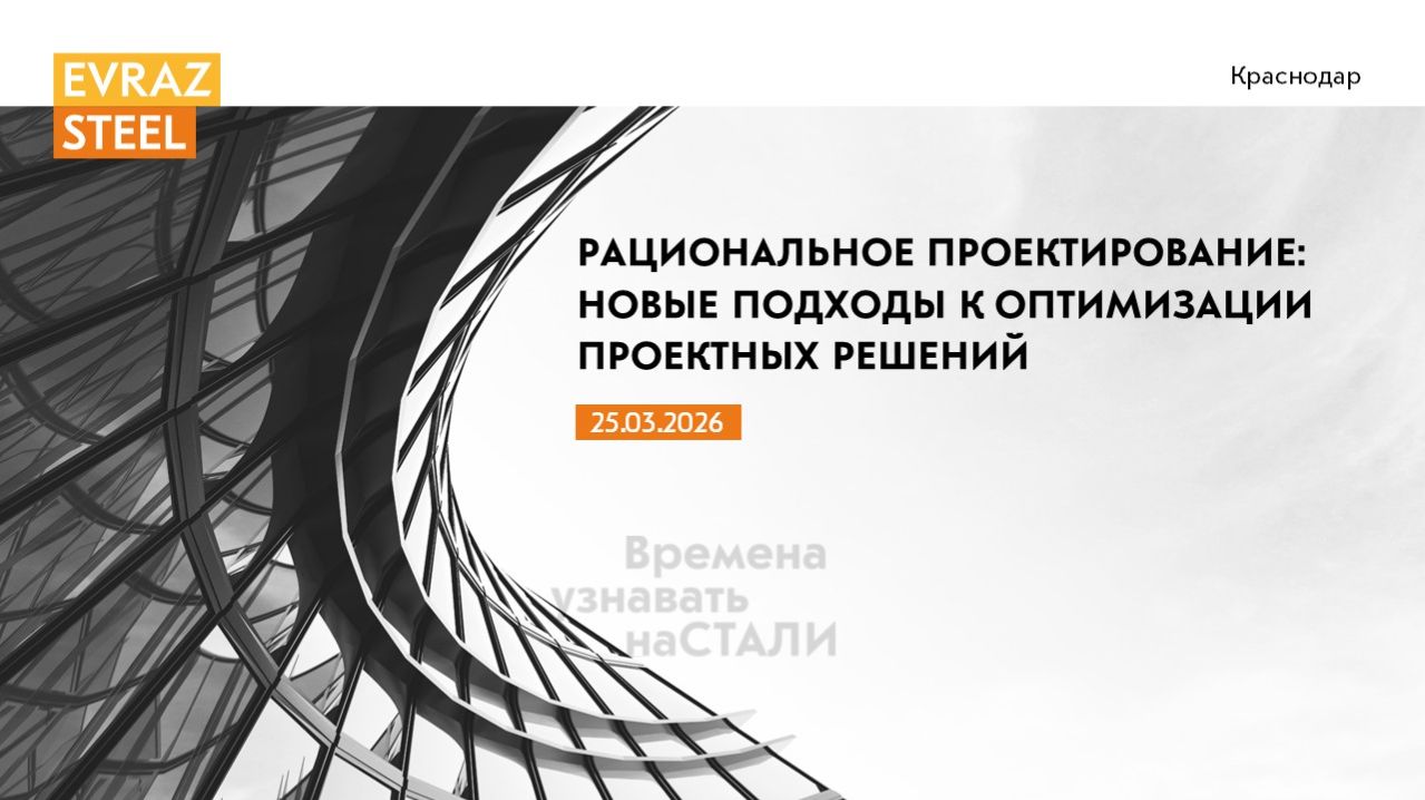 Семинар EVRAZ STEEL в Краснодаре был посвящён оптимизации проектных решений в стальных конструкциях – снижению стоимости и сроков строительства за счёт эффективных схем, корректных расчётов и применения высокопрочных сталей. Участники разобрали практические кейсы, включая выбор рациональных сечений, использование стали C390 и проектирование сложных объектов (в том числе портовой инфраструктуры). Отдельное внимание уделили расчётам в сейсмических районах и влиянию коэффициента K1. Ключевой вывод: основная часть стоимости и эффективности проекта формируется на стадии проектирования, что делает роль проектировщика критически важной.