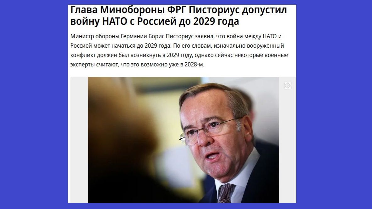 ⚡️Война между НАТО и Россией может начаться до 2029 года, так считает глава Минобороны Германии