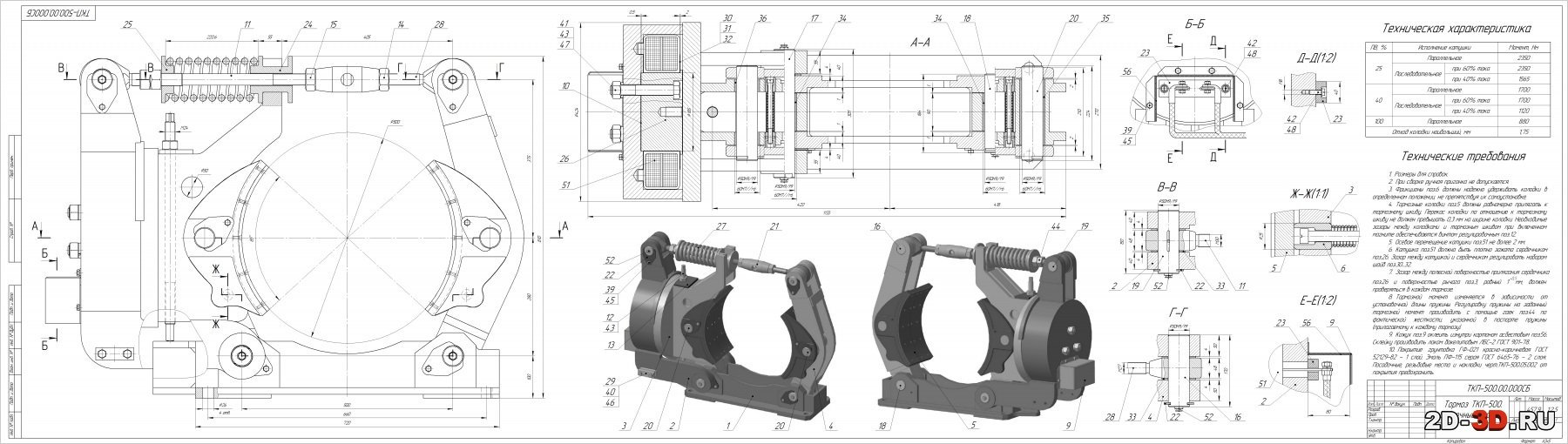 Тормоз ТКП-500 чертежи и 3D модель сборки с деталировкой