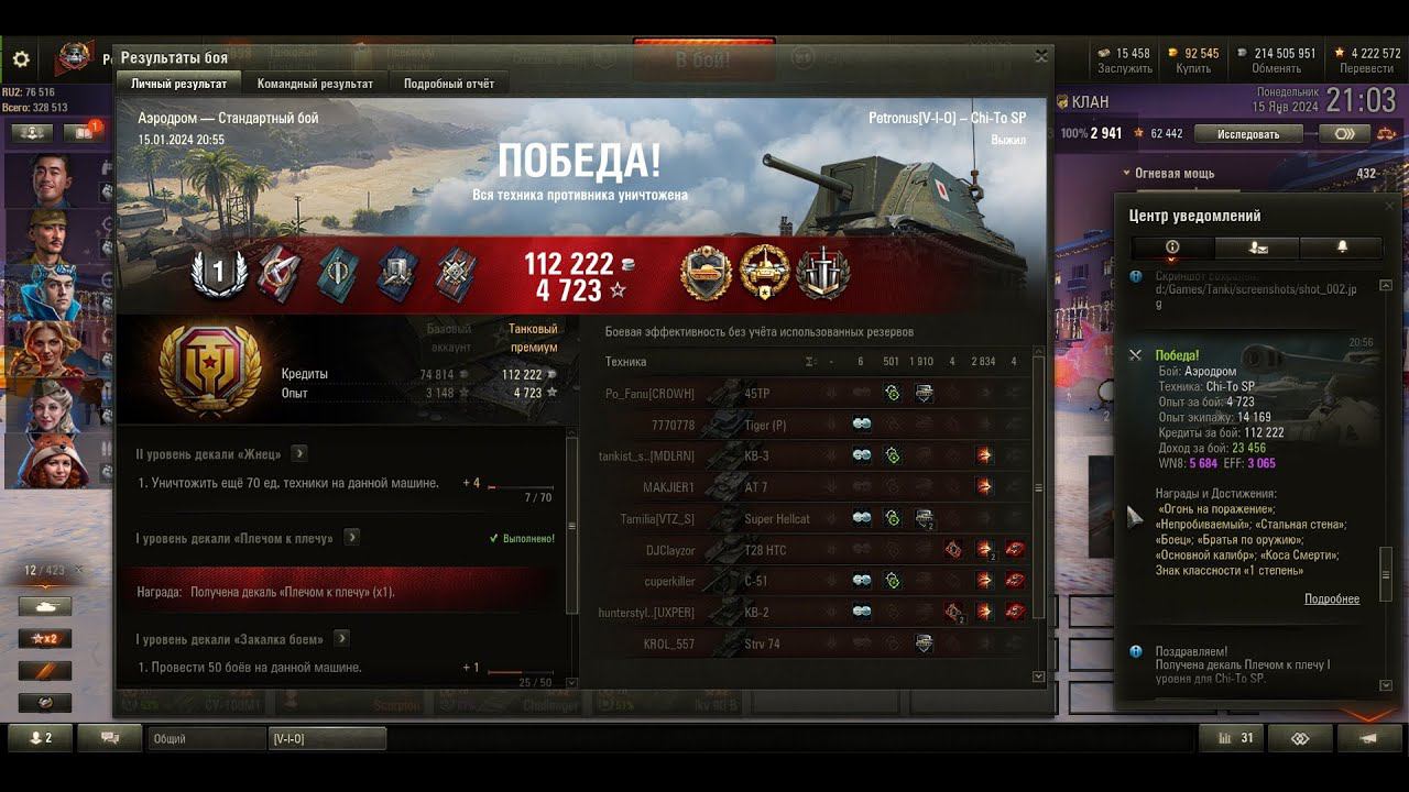 2024 01 15 Chi To SP, Аэродром, Коса Смерти и Осн калибр, 2834урон, 4фраг, 1910 натанчил