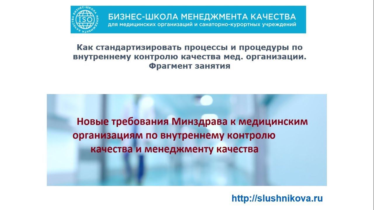 Смотрите фрагмент занятия по созданию системы внутреннего контроля качества в медицинской организации по новым требованиям Минздрава ( в соответствии с проектом Приказа Минздрава об утверждении Требований к организации и проведению внутреннего контроля качества и безопасности медицинской деятельности) Смотрите подробно курс по созданию системы внутреннего контроля качества в мед. организации по ссылке https://slushnikova.ru/sozdanie-sistemy-vnutrennego-kontrolya-kachestva-med-organizatsii-po-novym-trebovaniyam/ Задайте ваш вопрос по электронной почте shmk2@yandex.ru или позвоните на WhatsApp +7968-268-37-72 Задавайте вопросы по электронной почте shmk2@yandex.ru, звоните! Светлана Лушникова, сертифицированный специалист по разработке и внедрению систем менеджмента, аудитор систем управления, бизнес-консультант и бизнес-тренер, директор компании "Бизнес-школа Менеджмента Качества" http://slushnikova.ru/ Присоединяйтесь к группе "Бизнес-клуб для мед. центров и клиник" https://vk.com/club140608882 Заходите ко мне на Фейсбук - https://www.facebook.com/lushnikovasn Дружите со в ВКонтакте - https://vk.com/slushnikova