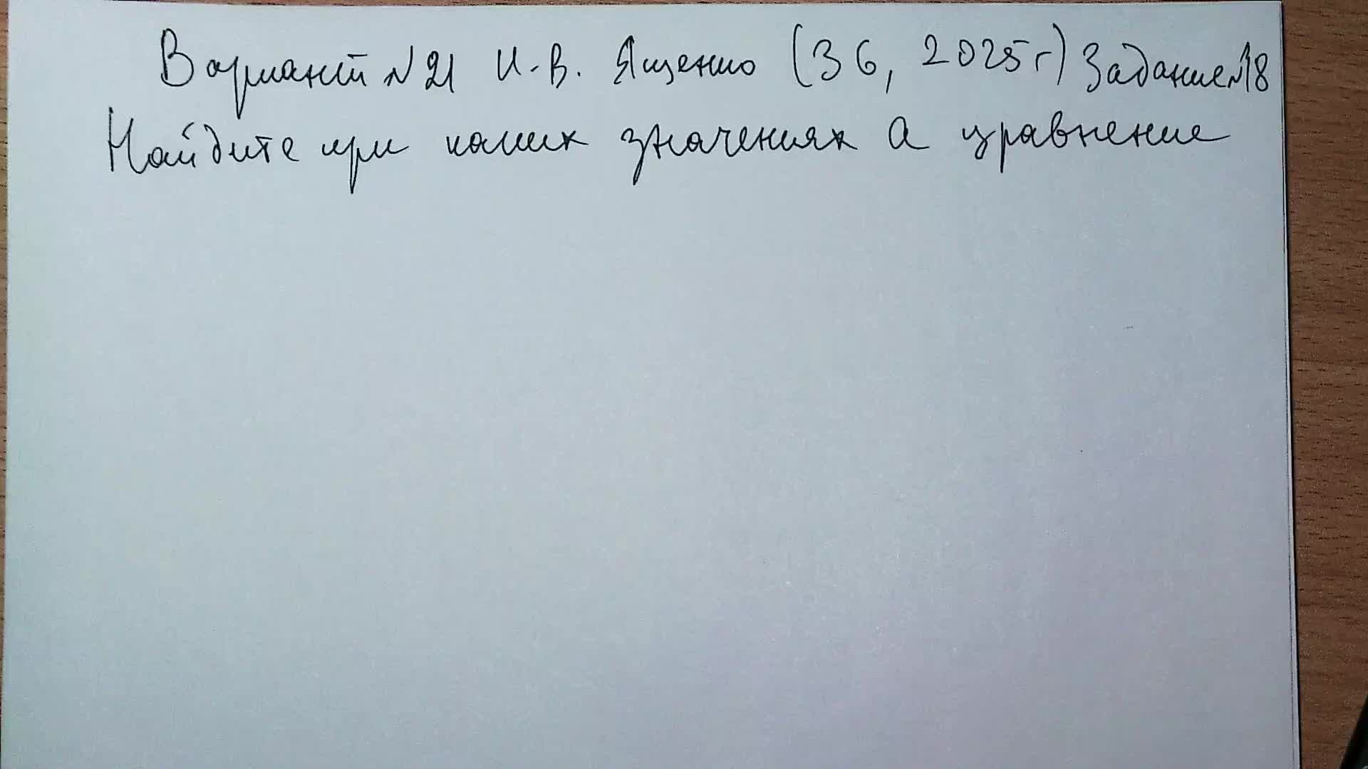 Вариант №21 И.В. Ященко (37 вариантов 2025 г) Задание №18. Уравнение с параметром.