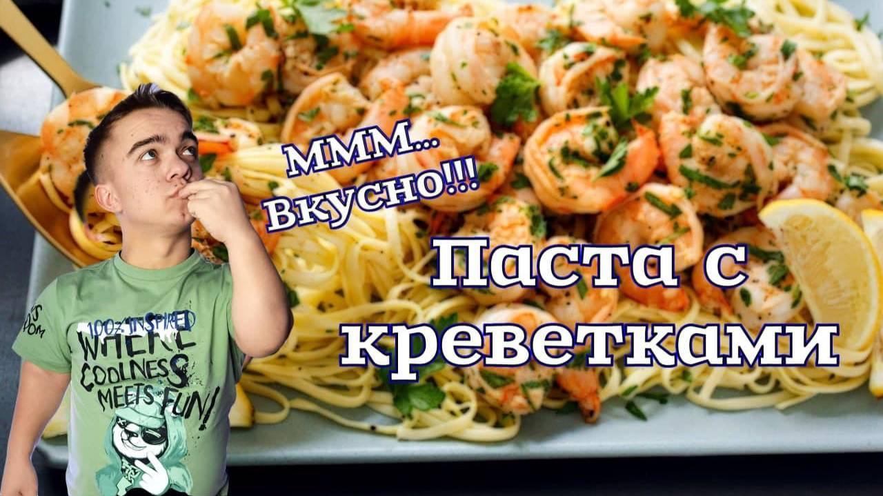 Готовим вкусную пасту с креветками в сливочном соусе.