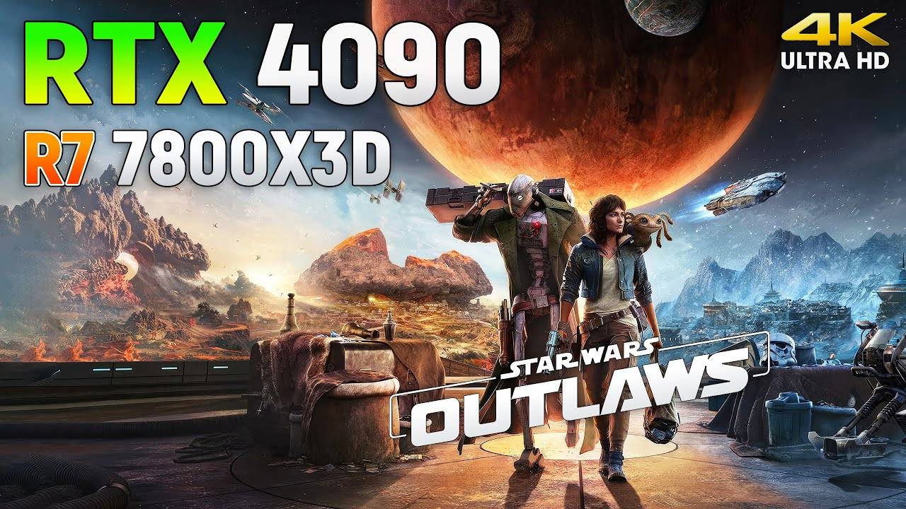 Star Wars Outlaws - Тестирование игры с видеокартой RTX 4090 и процессором Ryzen 7 7800X3D в разрешении 2160p (4K) с использованием DLSS и Генерации кадров 4K, Ultra Settings, RT - ON - 0:00 4K, Ultra Settings, RT - ON, DLSS - Quality - 0:50 4K, Ultra Settings, RT - ON, DLSS - Quality, FG - ON - 4:31 Конфигурации системы: - Операционная система: Windows 11 - Процессор: Ryzen 7 7800X3D - Видеокарта: MSI Gaming GeForce RTX 4090 24GB GDDR6X - Материнская плата: MSI MPG X670E CARBON - Оперативная память: G.SKILL Trident Z5 RGB 32GB DDR5 6000MHz - SSD: 2 x SAMSUNG 970 EVO M.2 2280 1TB - Блок питания: CORSAIR HX Series HX1200 1200W