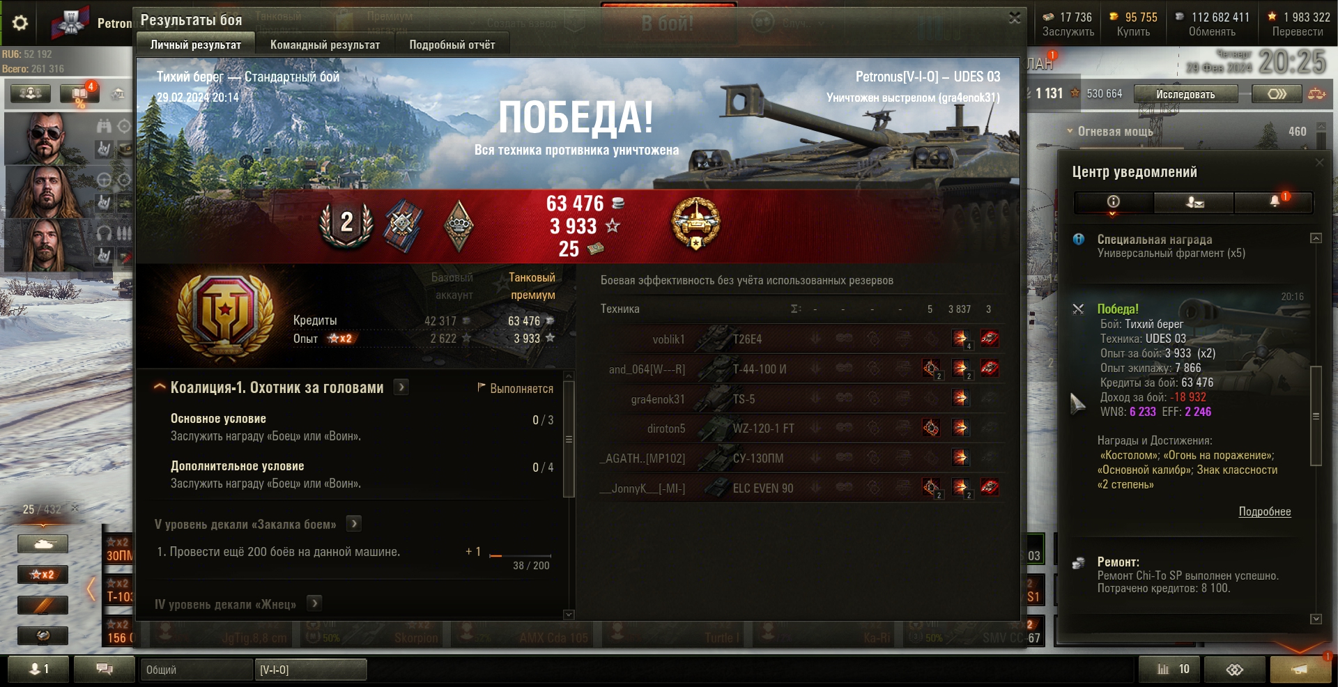 Победа! Бой: Тихий берег, Техника: UDES 03, Тихий берег, 3837 урон, Основной калибр, 3 фраг Опыт за бой: 3 933 (x2) , Опыт экипажу: 7 866, Кредиты за бой: 63 476, Доход за бой: -18 932, WN8: 6 233, EFF: 2 246, Награды и Достижения: «Костолом»; «Огонь на поражение»; «Основной калибр»; Знак классности «2 степень» ----------------------- Здесь мои покатушки по игре МИР ТАНКОВ, Не судите строго, играю урывками после работы. :). Стримы и видео на RUTUBE https://rutube.ru/channel/23544308/, на ЮТУБЕ https://www.youtube.com/channel/UCPZbvH8TEAkNYXJClIHbgZQ, на твитче https://www.twitch.tv/anpetr33, на TROVO https://trovo.live/anpetr33, на NUUM https://nuum.ru/channel/anpetr33 Всем добра :)