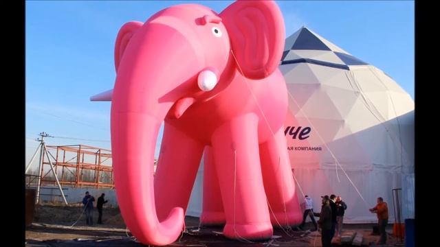 Огромная надувная фигура яркого слона розового цвета