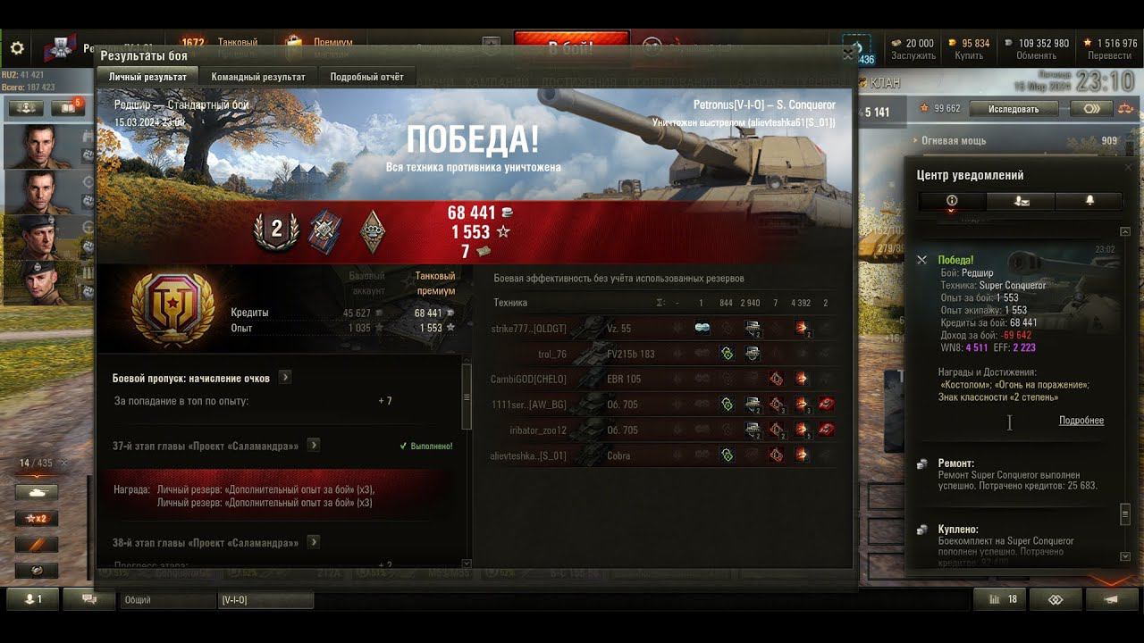 2024 03 15 1 vs 4, Super Conqueror, Редшир, 4392 урон, 2 фраг, 2940 затанчил