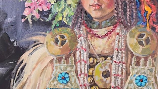 80x80 cm, acrylic, oil on canvas / Acryl, Öl, Leinwand / холст, масло, акрил The painting "Brokpa" is another portrait from the artist's series "Children of the World". Before us is a young representative of the Brokpa tribe in India. Look at her completely European face, there are no people with such an appearance in India. The fact is that the Brokpa tribe inhabits hard-to-reach areas of the Himalayas and lives in strict isolation, for several centuries guarding the purity of their blood. They consider themselves true Aryans and descendants of the warriors of the army of Alexander the Great. The women of the tribe have an unusual outfit made of goat fur with many decorations, coins, buttons, pendants and stones. They braid 12 braids on their heads and their main decoration is an incredible headdress made of leather, semi-precious stones and flowers, which is passed down by inheritance. The main flower in this headdress is physalis, which is designed to protect the owner from evil spirits This painting is a real work of art, made in mixed media, it will decorate any interior with dignity. The painting is ready to hang on the wall, equipped with hooks, the sides are painted with dark paint. You can buy my paintings on / Мои картины можно приобрести на / Meine Bilder sind hier zu kaufen https://www.singulart.com/en/artist/anna-shesterikova-19385 https://www.1stdibs.com/creators/anna-shesterikova/ Instagram https://www.instagram.com/anna_shesterikova_art/ Facebook https://www.facebook.com/profile.php?id=1554265169 Мои стихи можно найти на https://stihi.ru/avtor/buchs5 Музыка: Soul and Mind - E's Jammy Jams