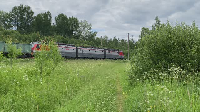 Электровоз 3ЭС4К-067, перегон Новый Быт - Пупышево, Ленинградская область (июнь 2024г.)