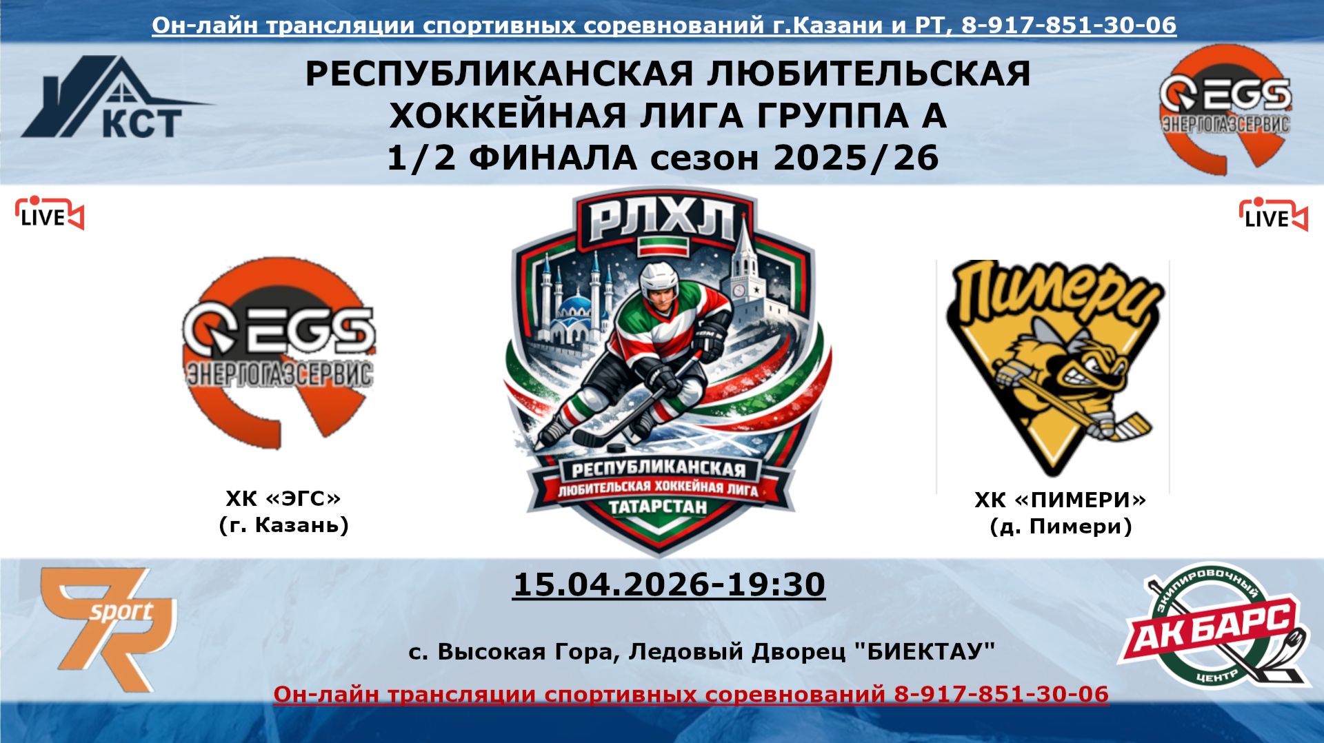 ХК «ЭГС» (г. Казань) - ХК «ПИМЕРИ» (д. Пимери)