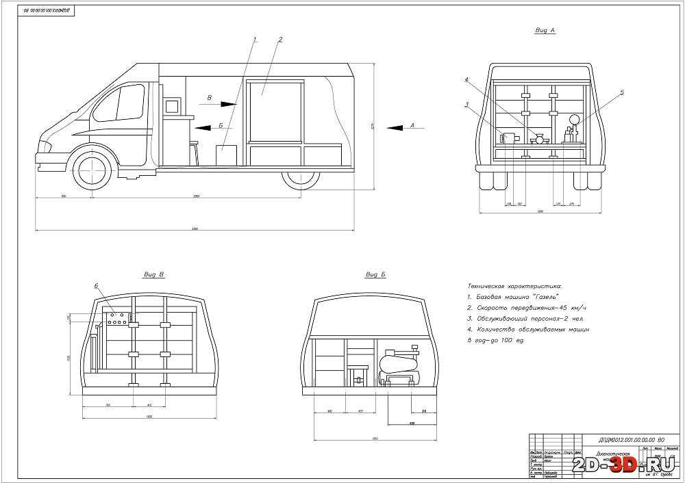Диагностический пост на базе «Газель» чертежи и расчёты в редактируемых форматах
