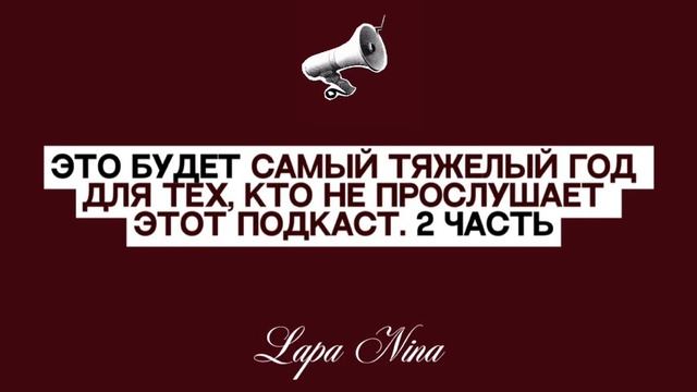 Это будет самый тяжелый год для тех, кто не прослушает этот подкаст. 2 часть. Lapa Nina.