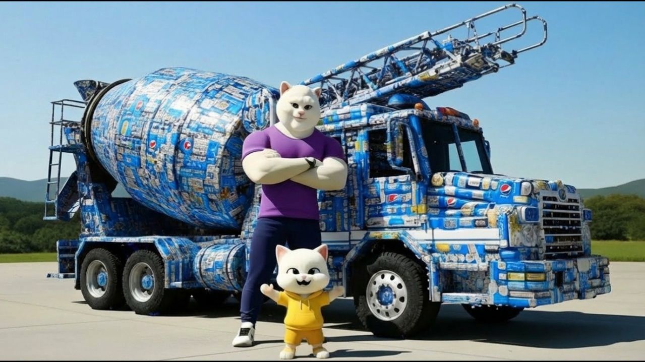 Котёнок сделал Бетоносмеситель из банок! Супер Мультики для детей. Детские мультики