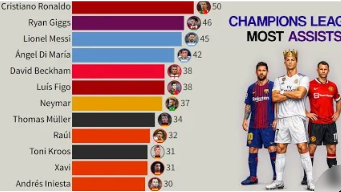 Топ-15 лучших ассистентов Лиги чемпионов 1992-2026