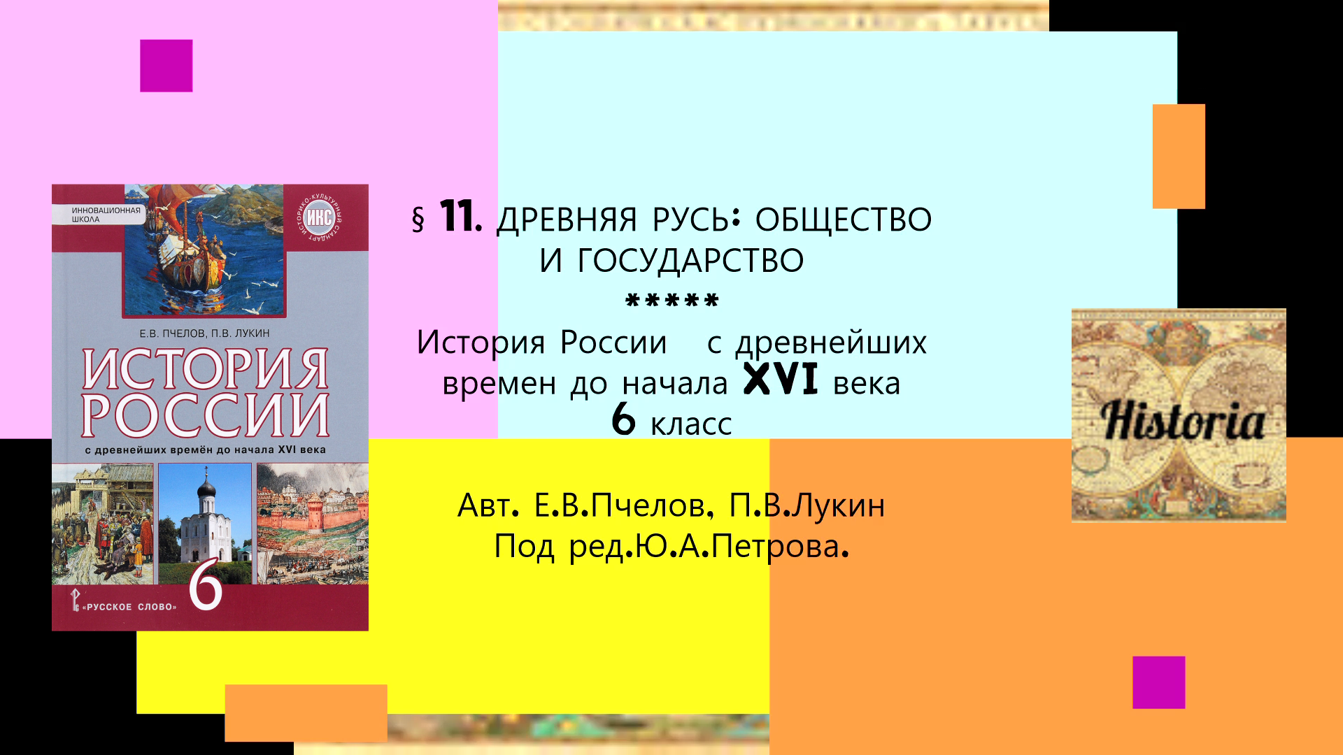 §11. ДРЕВНЯЯ РУСЬ ОБЩЕСТВО И ГОСУДАРСТВО. 6 класс. Авт. Е.В.Пчелов,П.В.Лукин, под ред.Ю.А.Петрова.