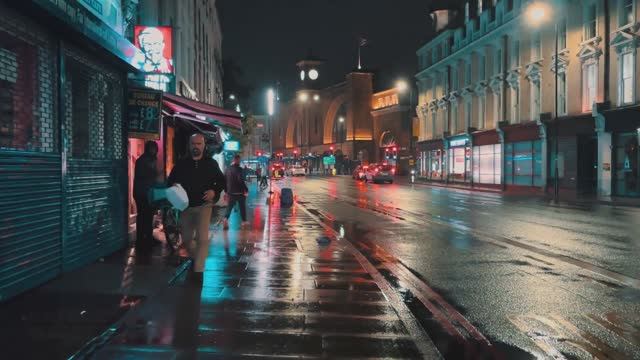 Прогулка по Лондону, Англия, дождливой летней ночью из Вест-Энда по улицам Холборн и Блумсбери к вокзалу Кингс-Кросс, Грейнари-сквер и Коул-Дропс-Ярд, включая станции Лестер-сквер, Ковент-Гарден, Холборн, Кингс-Кросс и Международный вокзал Сент-Панкрас. Прогулка под дождем по Лондону, проливной дождь по Лондону, прогулка под дождем по центру Лондона, пешеходная экскурсия по Холборну, пешеходная экскурсия по Блумсбери, пешеходная экскурсия по Вест-Энду, пешеходная экскурсия по центру Лондона, пешеходная экскурсия по Лондону на Кингс-Кросс, ночная прогулка по угольным складам, экскурсия по зернохранилищу, ночная прогулка по Лондону, темные улицы Лондона, Лондон после темно, виртуальная пешеходная экскурсия по Лондону, летняя прогулка по Лондону, прогулка по Лондону по городу, прогулка по Англии, столица Великобритании. Запись сделана в июле 2023 года, в будний день около полуночи Погодные условия и температура - дождливо, 16°C/61°F