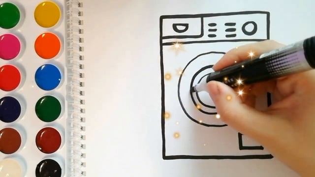 Раскраска для детей СТИРАЛЬНАЯ МАШИНКА /Мультик - раскраска /Учим цвета