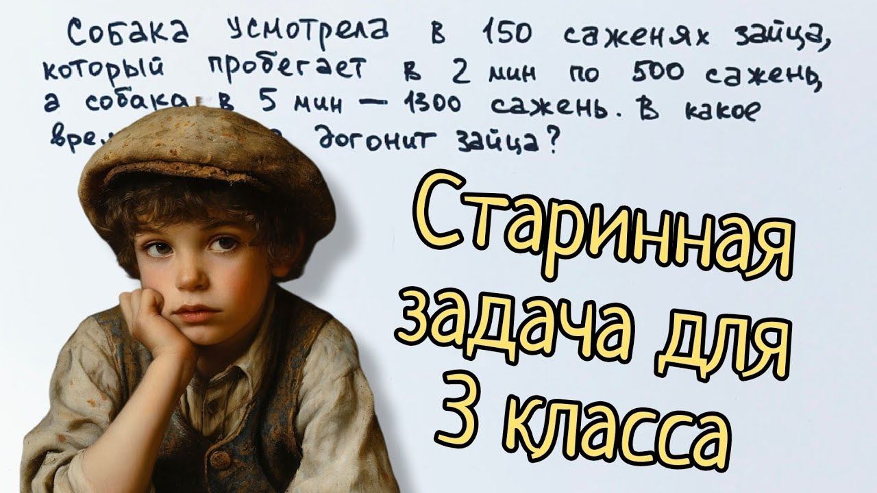 Мой канал ВК — https://vk.com/yellow.school Собака усмотрела в 150 саженях зайца, который пробегает за 2 минуты 500 сажень, а собака за 5 минут пробегает 1300 сажень. Спрашивается, за какое время собака догонит зайца?